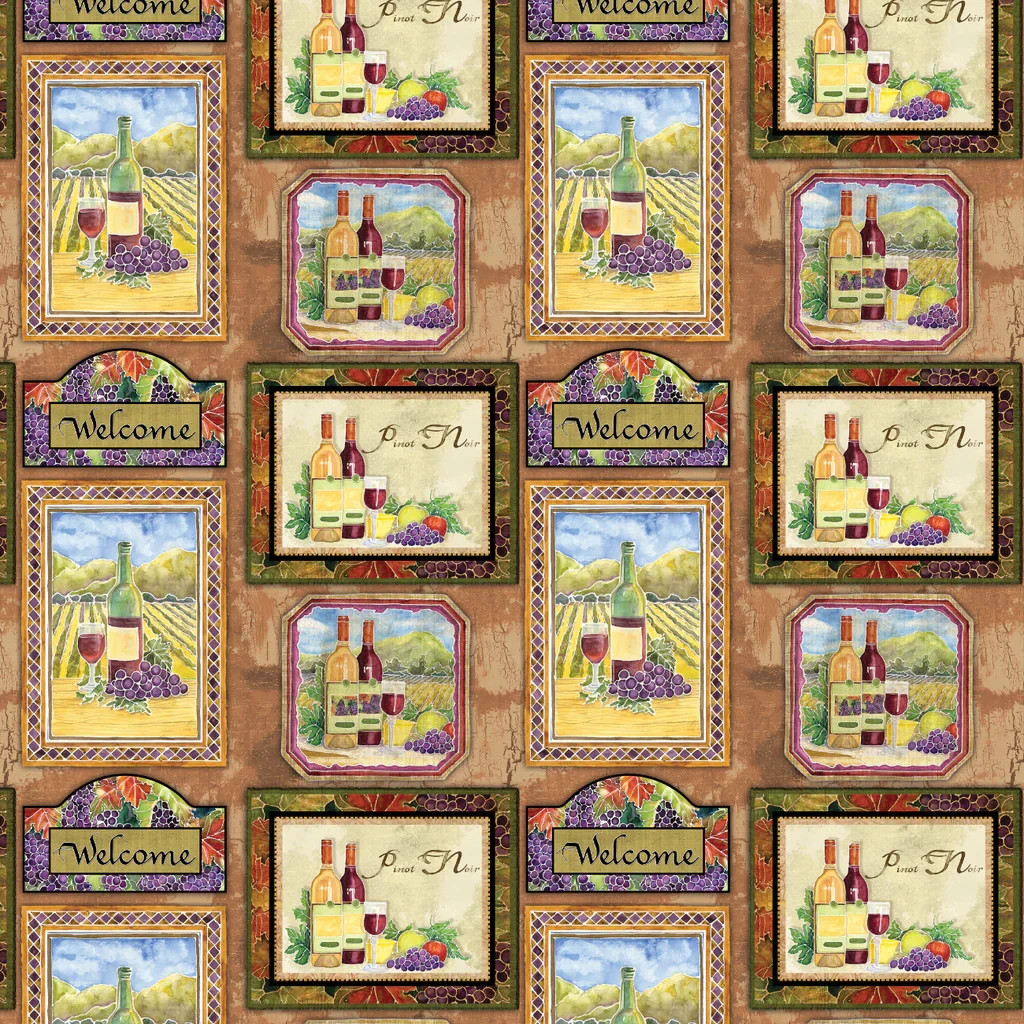 Aged Vineyard Collection-Posters-100% Cotton-Multi-55230501-01 Indulge your senses with deep rich tones of vintage wine and the intricate beauty of grapevine canopies in our Aged Vineyard quilting cotton fabric collection. Complete with a variety of traditional designs, blenders and a stunning panel, this collection is perfect for heirloom quilts, kitchen linens