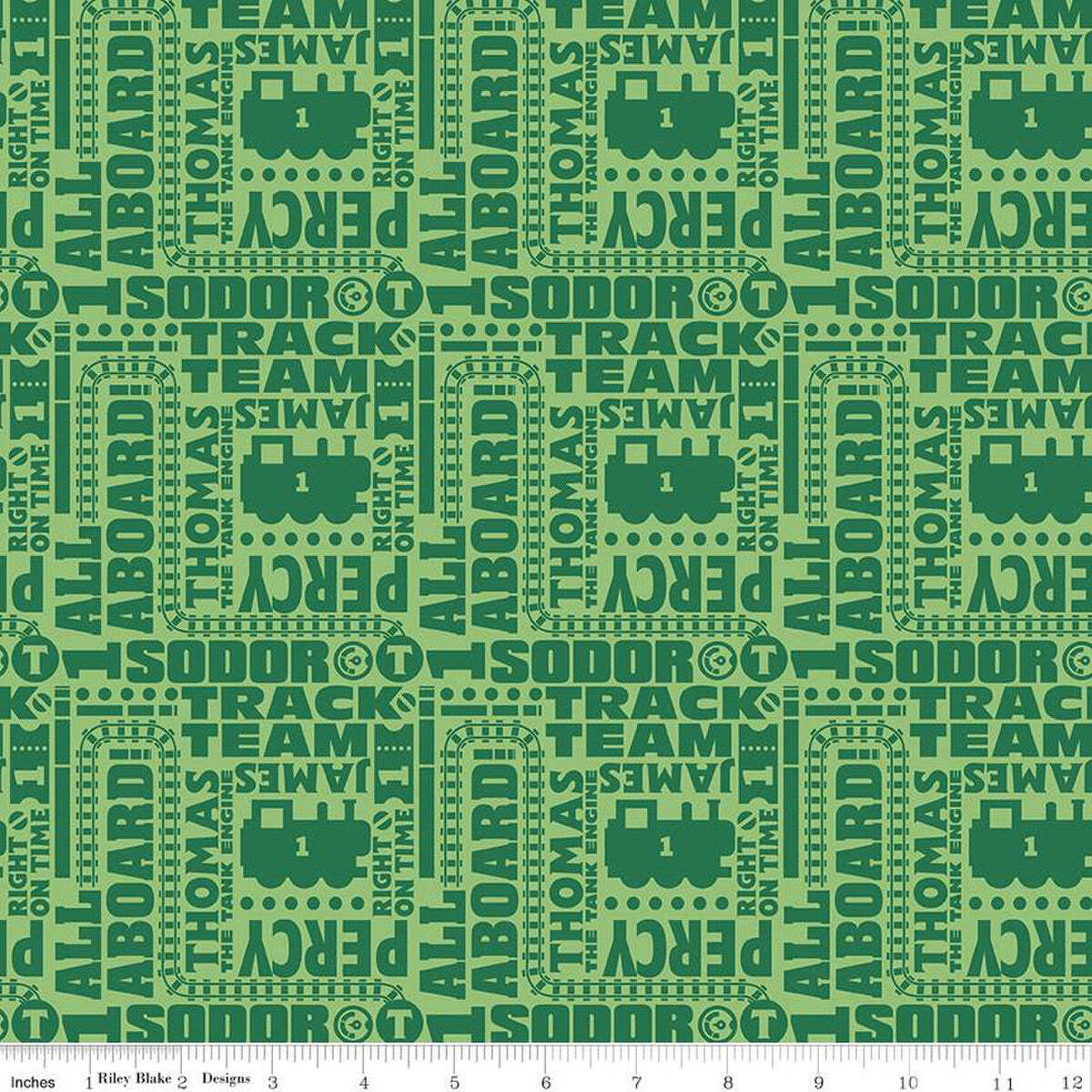 All Aboard with Thomas & Friends Text Green Cotton Fabric