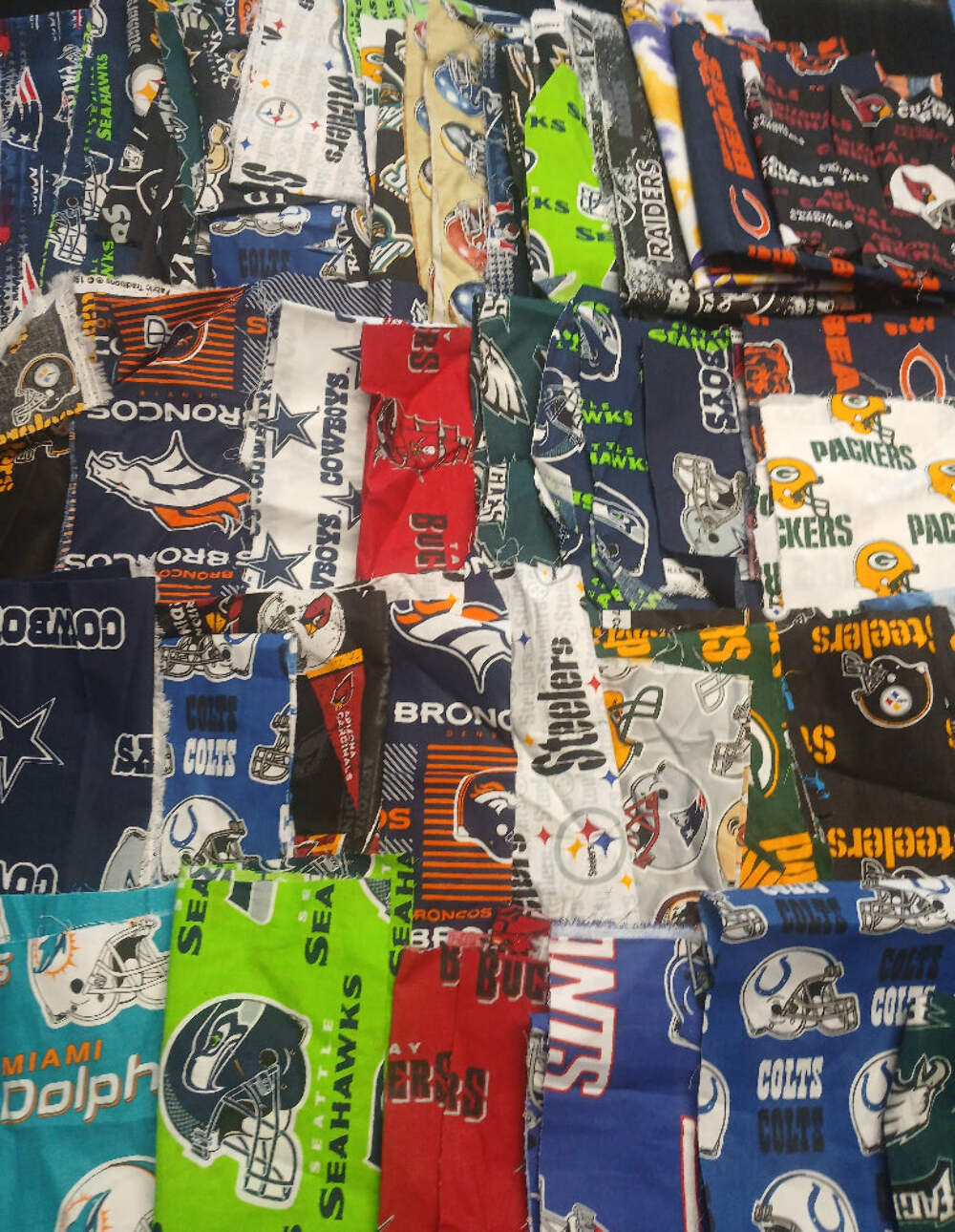 Assorted Sport Teams Football Licensed Cotton Fabric – 12oz Scrap Small Pieces Bundle