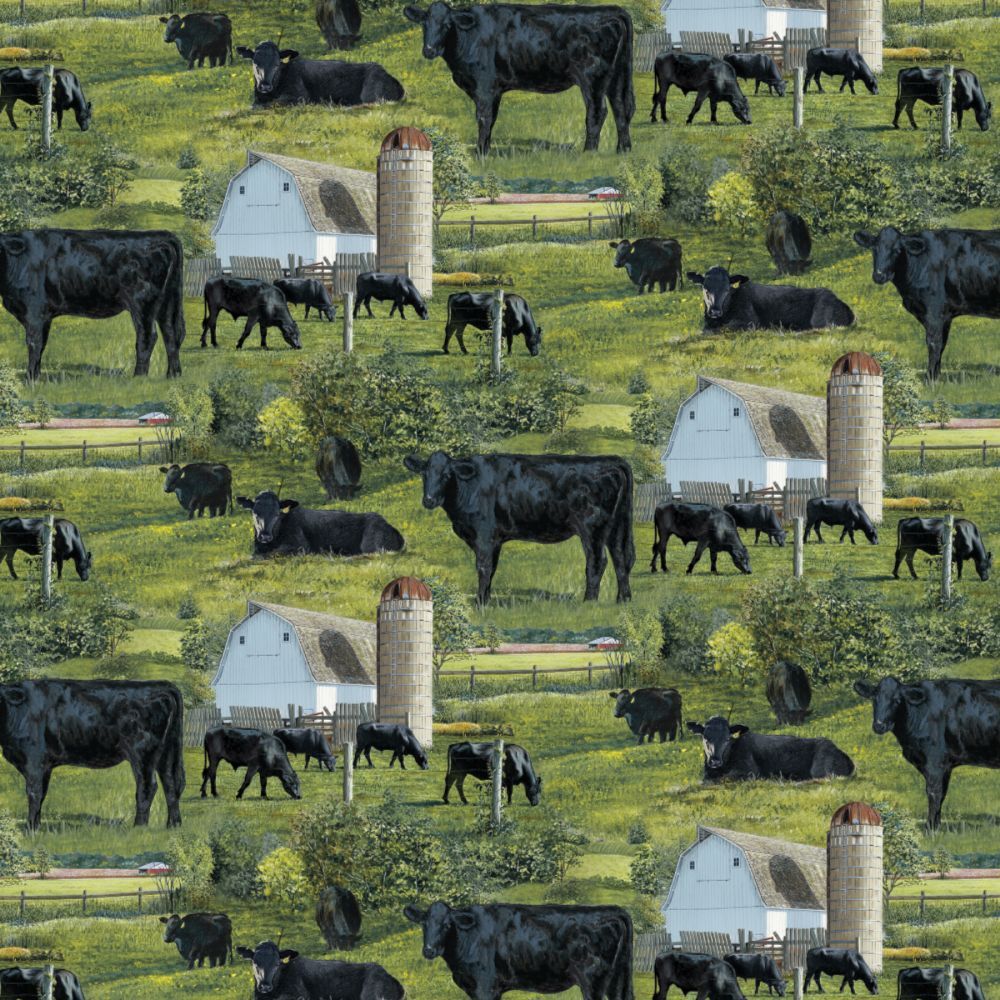 Be the first to review “Black Angus Cow Scenic Cotton Fabric”