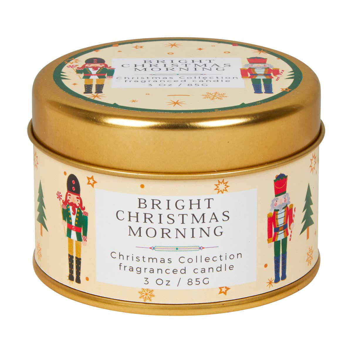 Infuse your home with the delightful aroma of the Bright Christmas Morning Fragranced Candle. This 3 oz tin candle comes from the Christmas Collection, making it perfect for cozying up your space with a fresh, festive scent. The beautiful gold tin features charming Nutcracker characters, adding a touch of holiday cheer to any room. Whether you’re creating a warm ambiance for family gatherings or gifting it to a loved one, this candle will bring the essence of Christmas to life.