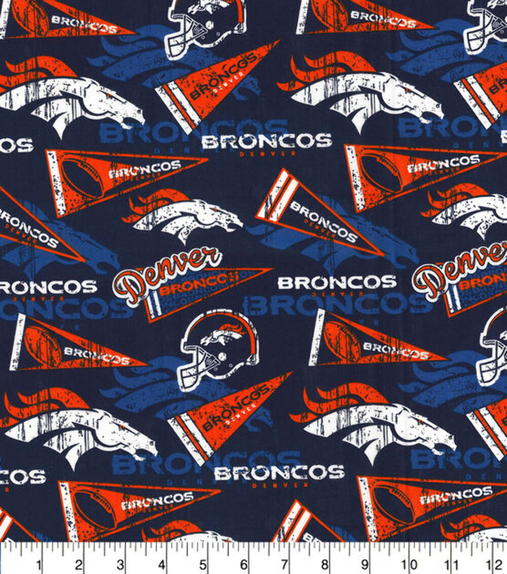 Great for any fan of the Denver Broncos . This 100% cotton fabric is perfect for quilting, apparel, and many other sewing or crafting projects. Sold by the yard. This fabric is measured and cut from the bolt in a continuous length. See our different cut to size options listed below.