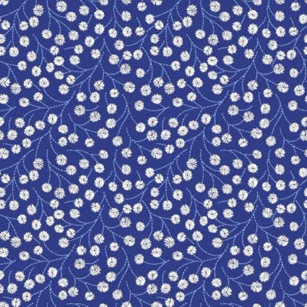 Butterfly Blues Stemmed Floral Royal Cotton Fabric