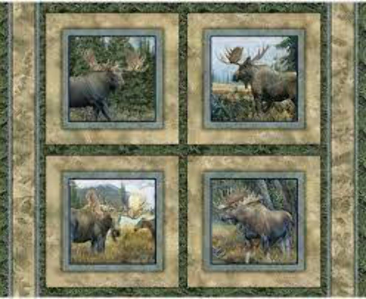 Caldwell Creek Moose Pillow Panel Cotton Fabric