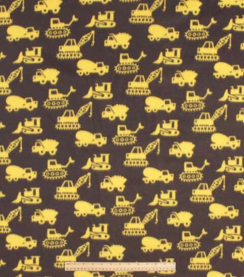 Construction Trucks Yellow Fleece Fabric By the Yard