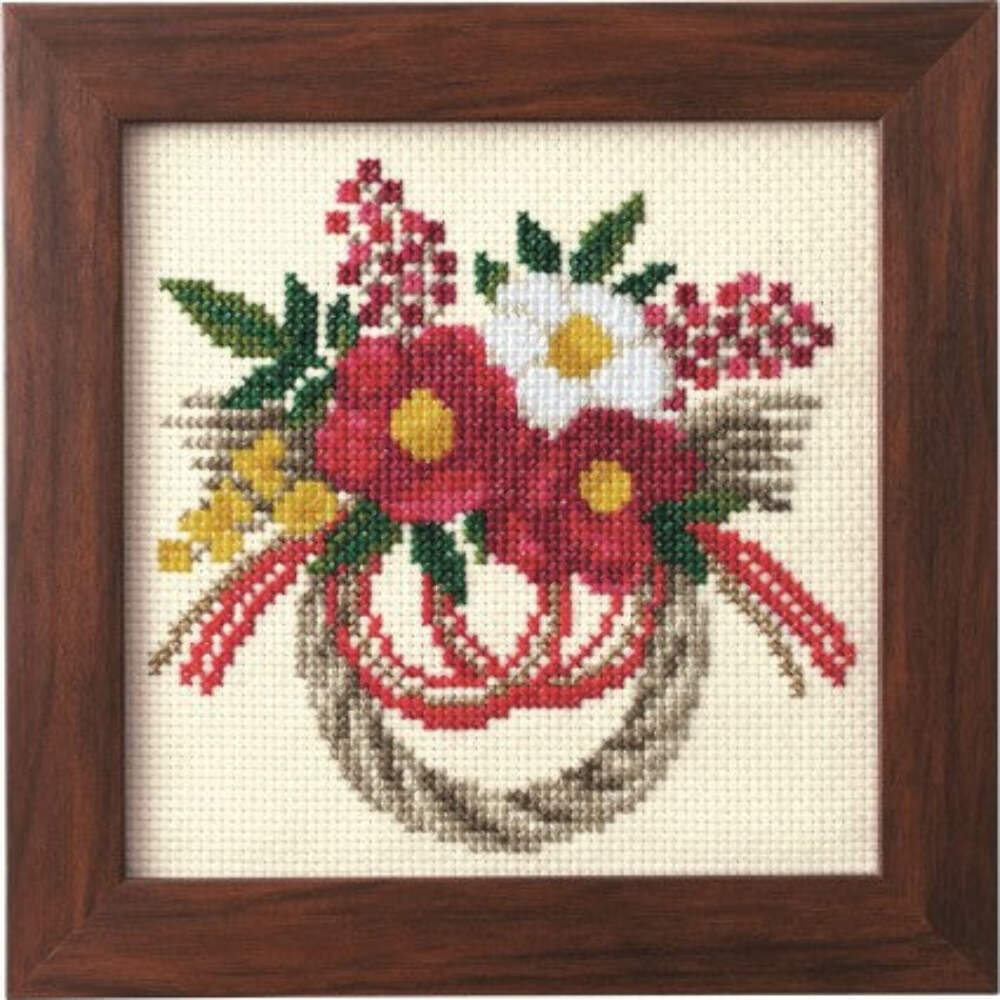 Cross Stitch Kit – Seasonal Flower Arrangement New Year’s Wreath and Carnelia