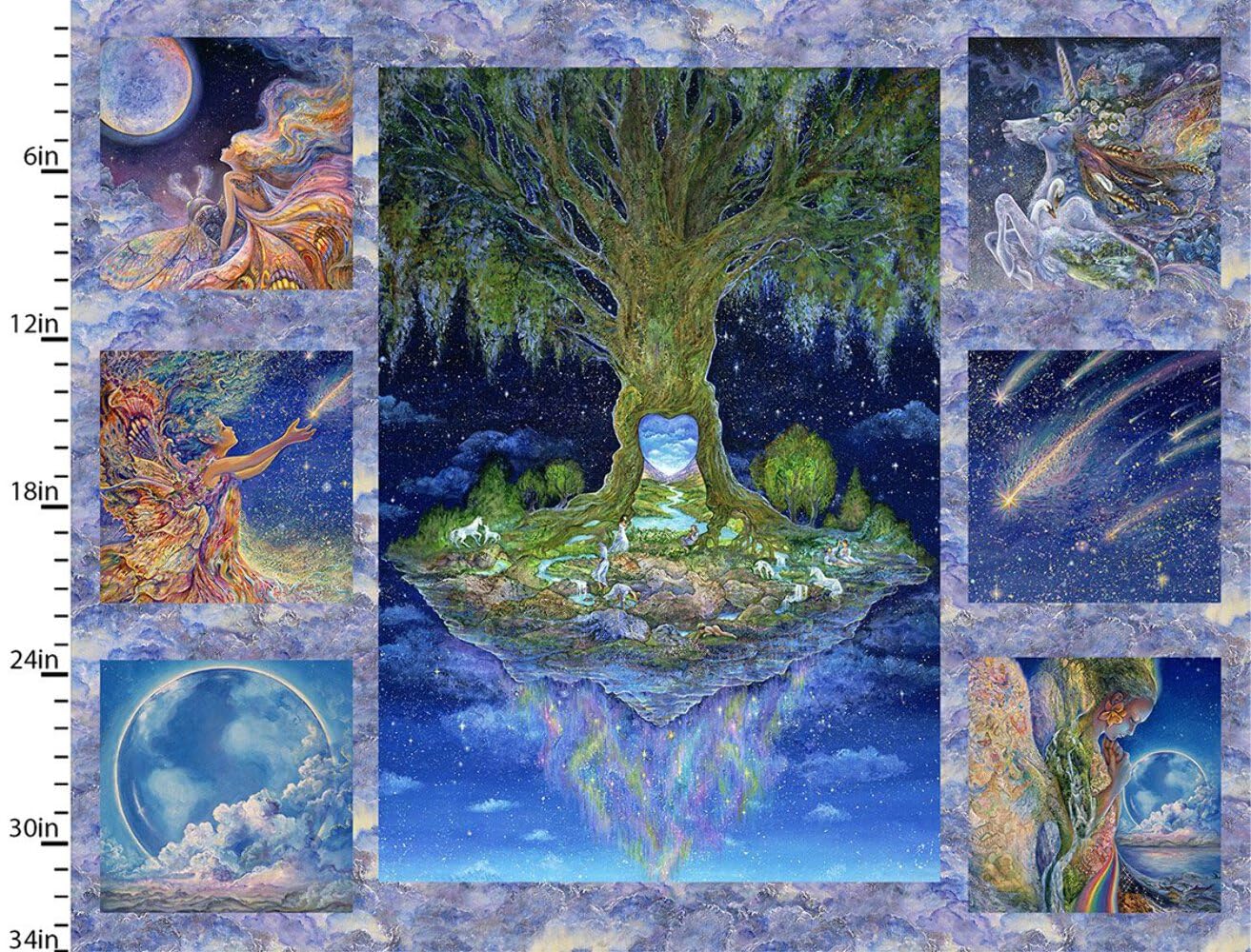 Gorgeous, Mystical Tree, 34-inch Panel, Shooting Stars, Unicorn, Galaxy Sky, Celestial Journey, Digitally Printed, 3 Wishes, 17130-MLT-CTN-D
