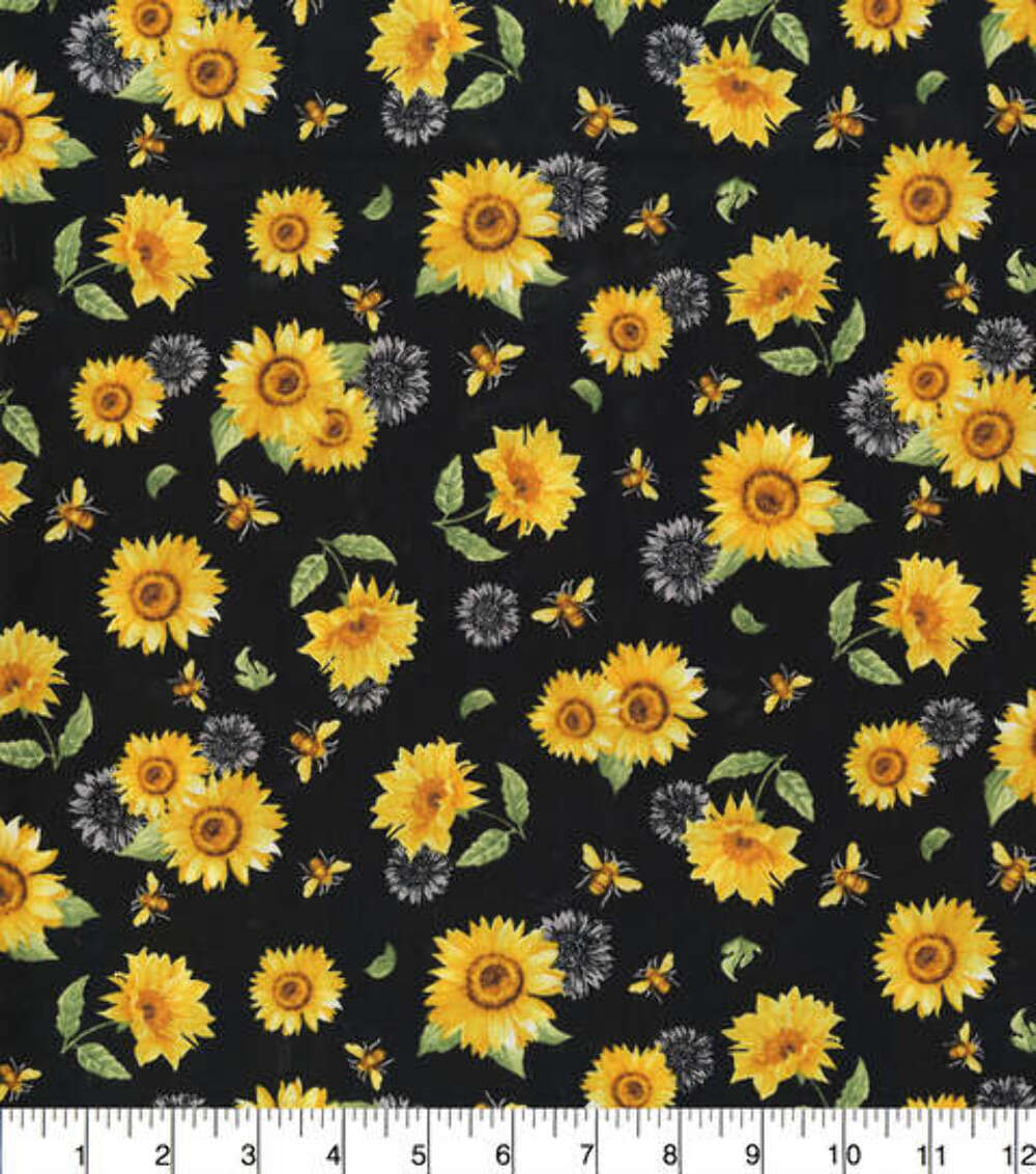 Handmade Valance or Curtain Panel Sunflowers And Bees Black