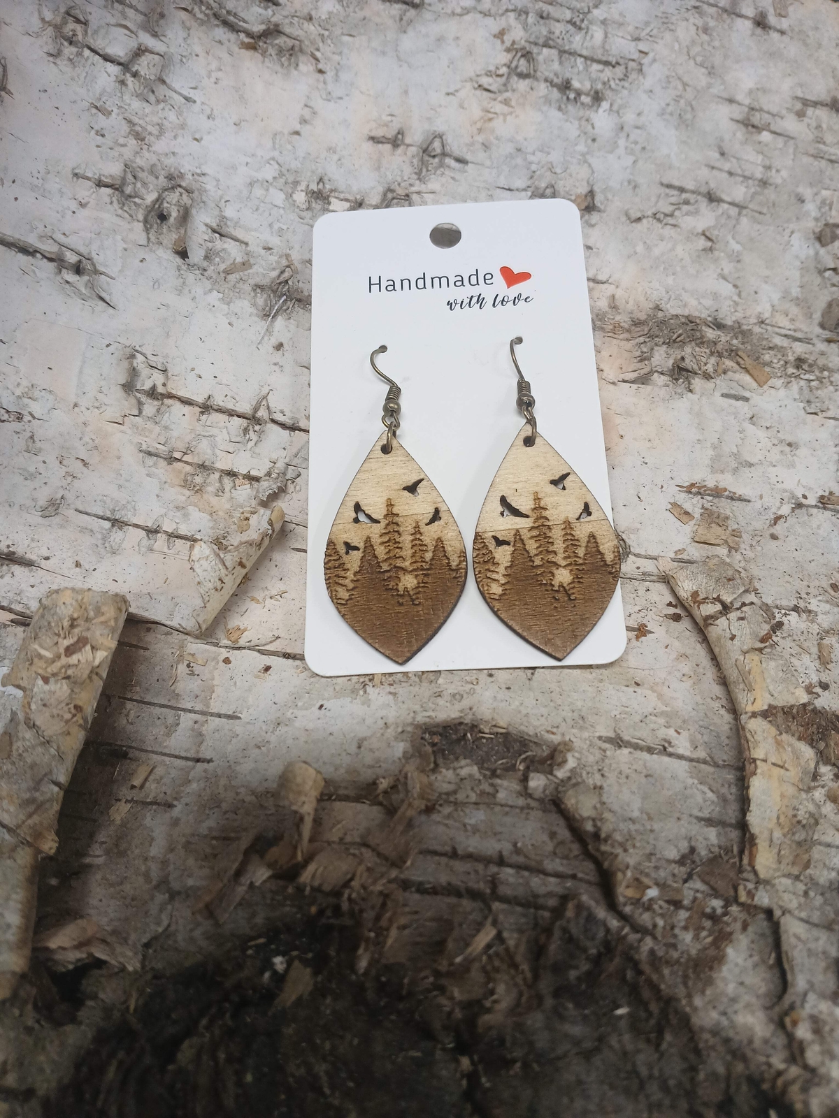 Handmade with Love – Natural Wood Tear Drop Forest Earrings