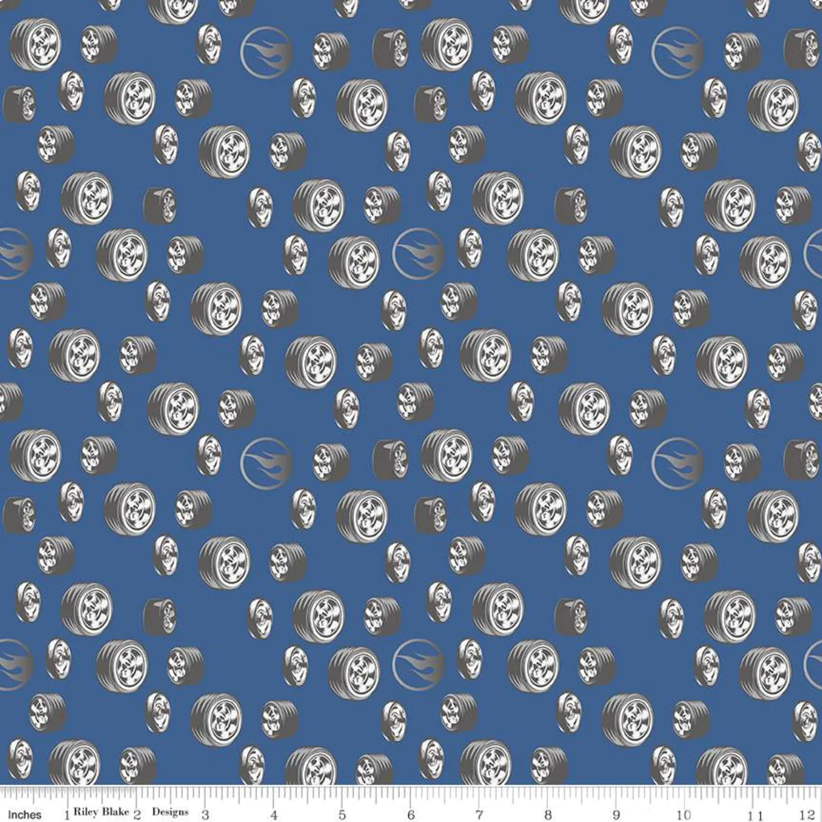 Hot Wheels Classic Tires Blue Cotton Fabric