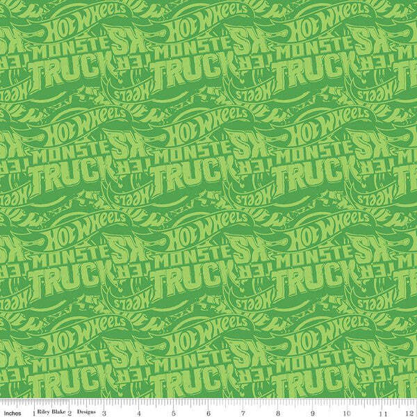 Item Number: C12954-GREEN Fiber Content: 100% Cotton Width: 43″/44″ Collection: Hot Wheels Monster Trucks Release Date: March 2023 Item Description: The Hot Wheels Monster Trucks collection for Riley Blake Designs is great for quilting, apparel and home decor. This print features tone-on-tone Hot Wheels logos. Official licensed product. Territorial sales restrictions may apply. Washing Instructions: Machine Wash Cold/Tumble Dry Low Packaging: Sold by the yard.