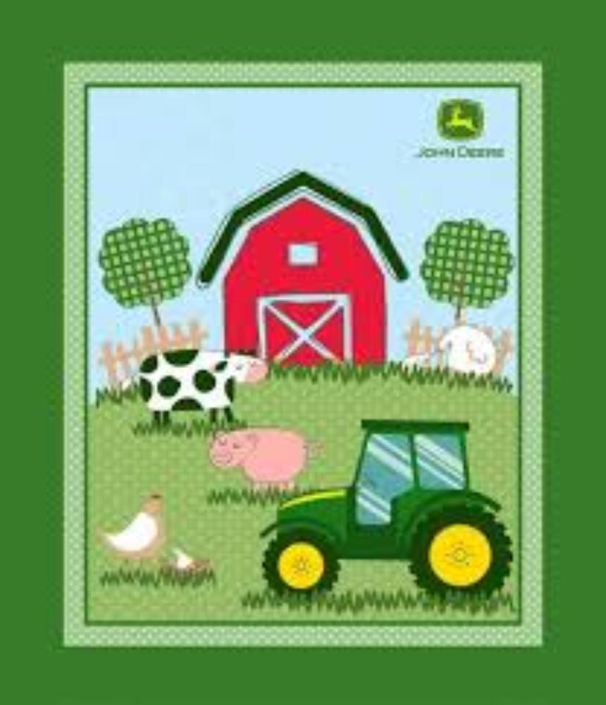 John Deere Barnyard Green Cotton Fabric Panel