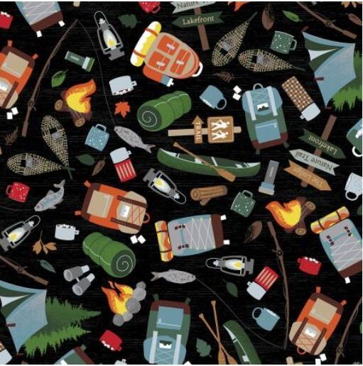 Moose Creek Lodge Gone Camping Black Cream Cotton Fabric