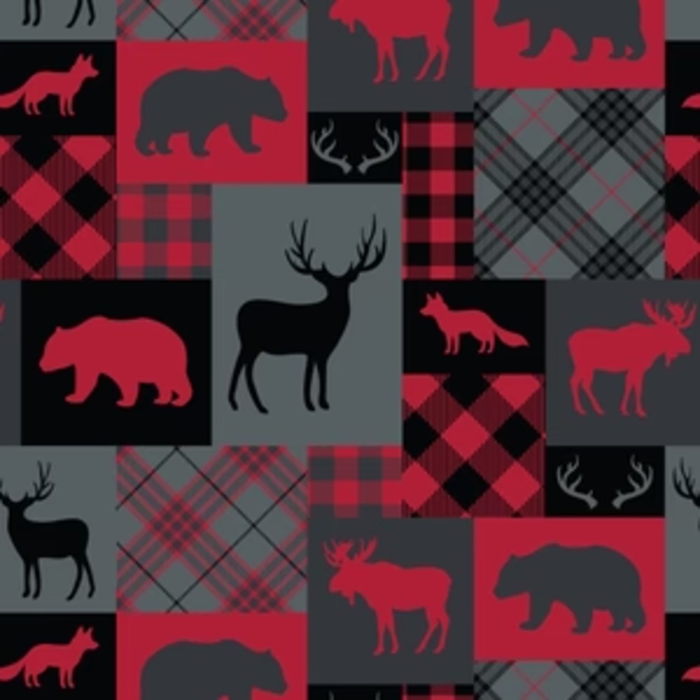 North of Ordinary Woodland Patchwork Red Fleece Fabric