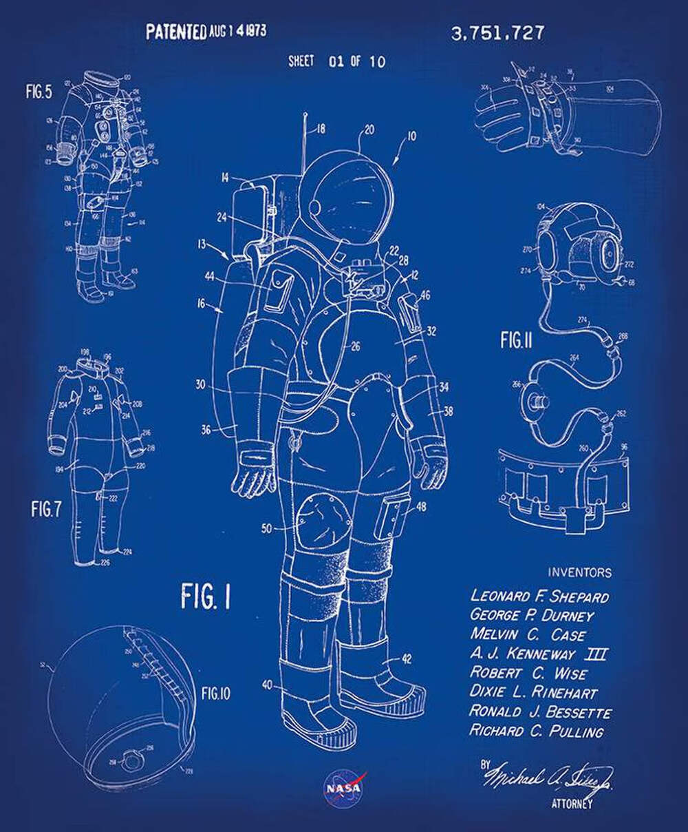 Item Description : The Outer Space by NASA collection for Riley Blake Designs is great for quilting, apparel and home decor. This panel features the spacesuit patent illustrations. Panel size is 36″ x 43″.