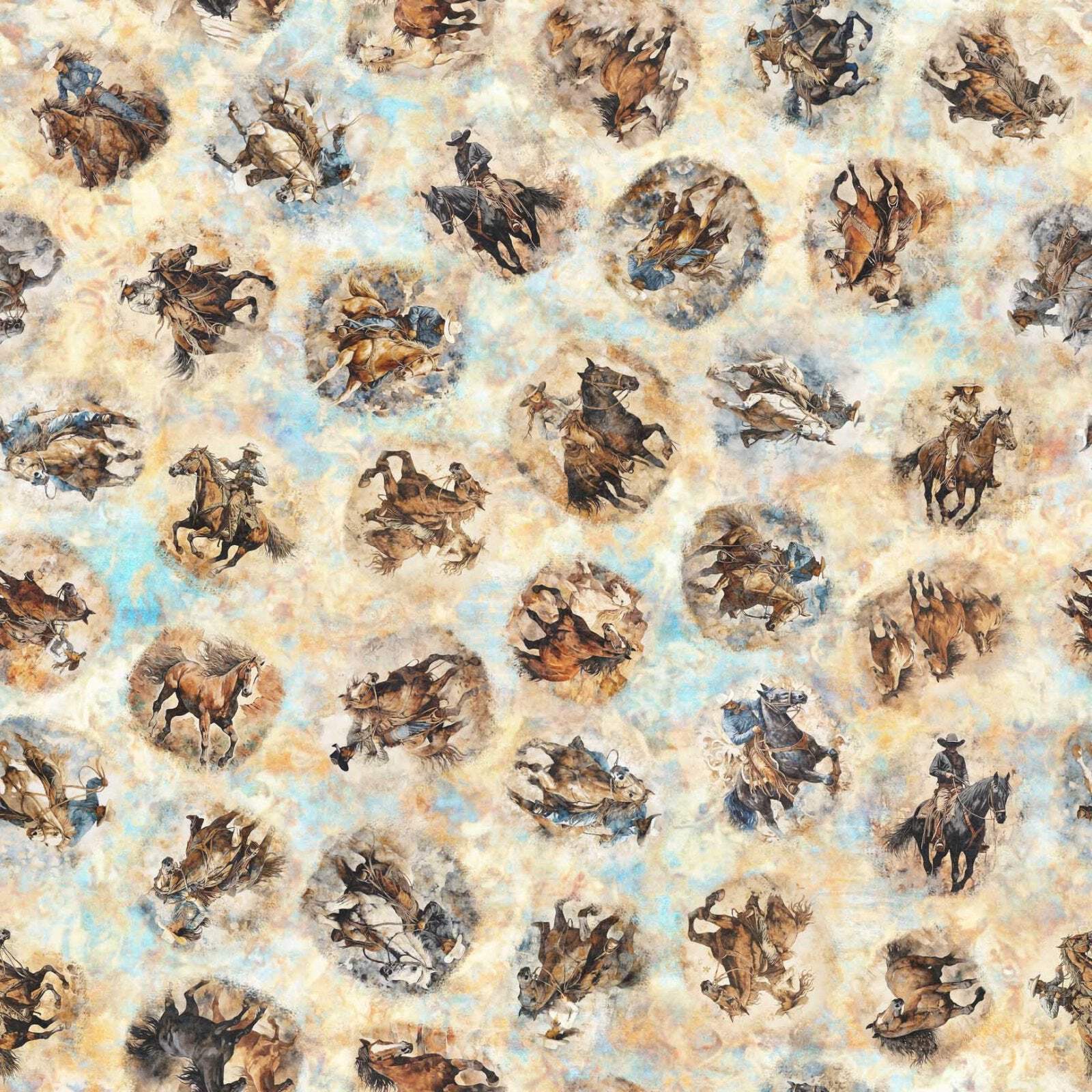 Running Wild Cowboy Cowgirl Vignettes Cream Cotton Fabric