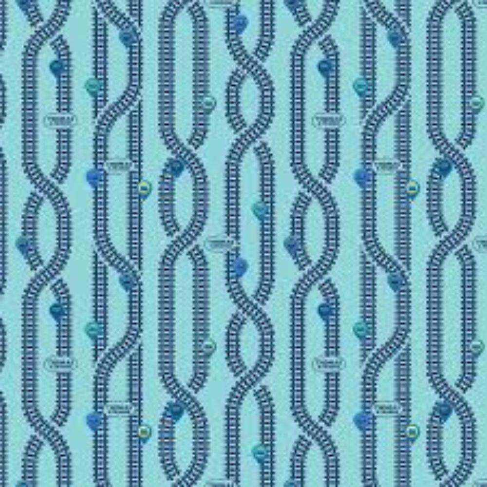 Thomas the Train Full Steam Ahead Key Locations Aqua Cotton Fabric