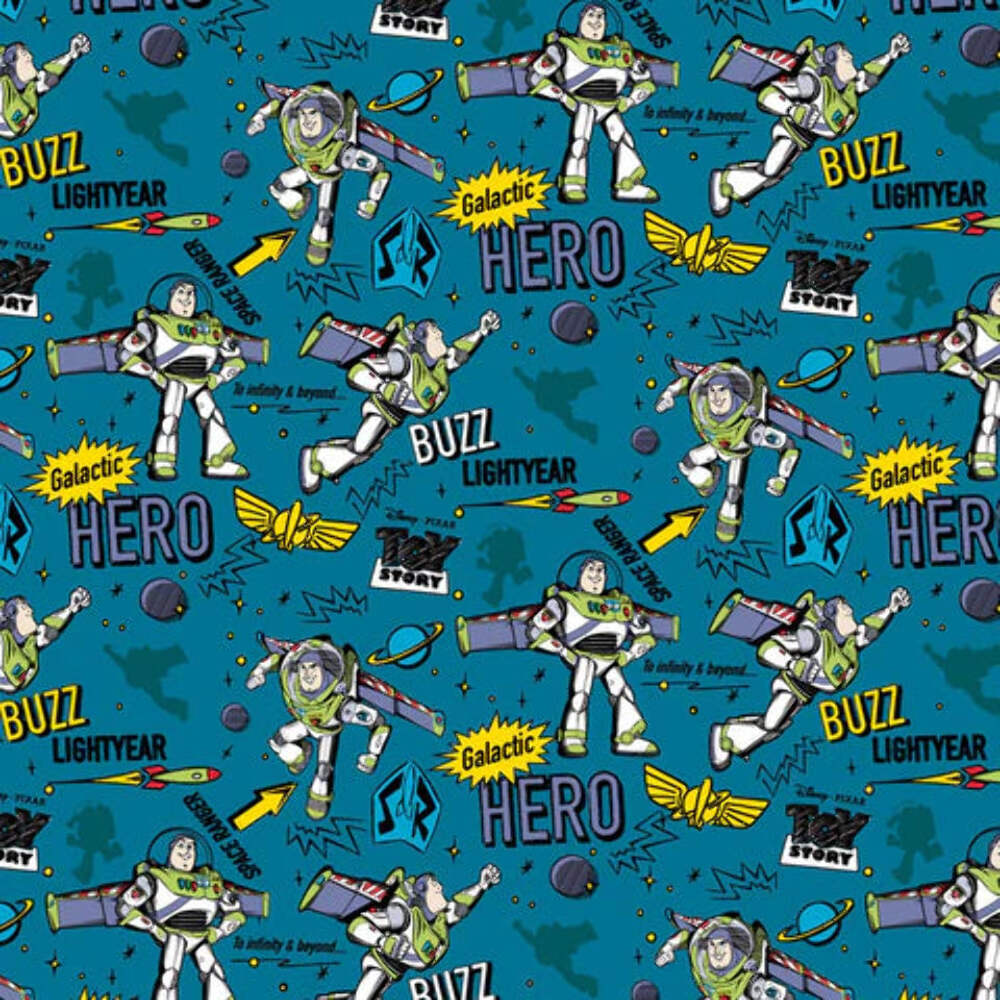 Toy Story Collection III Buzz Lightyear Galactic Hero Teal Cotton Fabric – 1 Yard Precut
